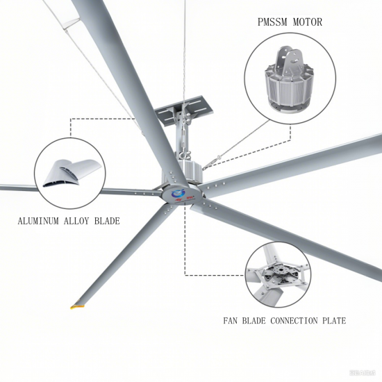 큰 산업 천장 천장 팬의 최대 직경은 7.2 미터이며, 면적은 1450 평방 미터이며 전력은 0.66 / 0.88 / 1.3kw입니다. 그것은 자연 환기를 달성 할 수 있으며, 넓은 적용 범위는 여름에 공간 냉각을 여는 솔루션입니다.